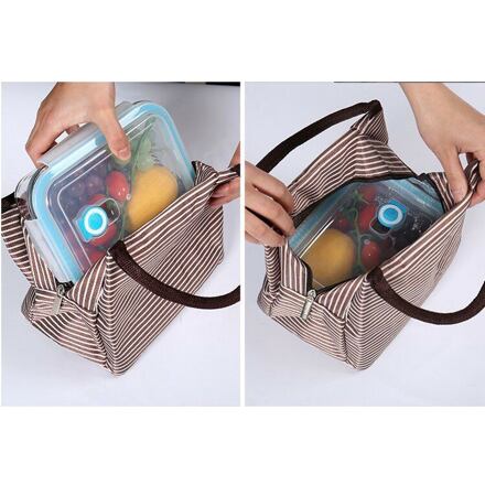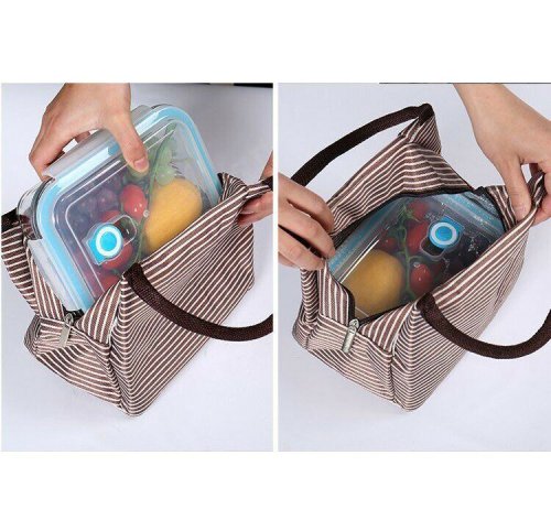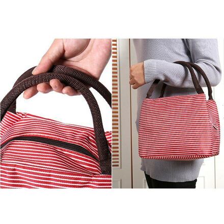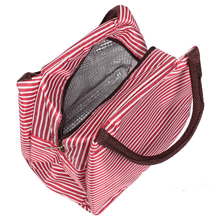 Chystáte si vzít s sebou na výlet svačinu? Zapomeňte na igelitové pytlíky. S touto stylovou termotaškou Merco se vám svačina bude nosit mnohem snadněji. Taška je skvělým pomocníkem na výlety, kempování, piknik nebo k vodě. Hodí se i na přenášení oběda do práce či do školy. Termotaška má rozměry 21 x 15,5 x 17 cm a je vyrobena z tkaniny Oxford s atraktivním pruhovaným designem, který nabízíme ve třech barevných provedeních (červená-bílá, hnědá-bílá, černá-bílá). Díky vnitřní vrstvě z ALU fólie si potraviny a nápoje déle udrží svoji teplotu. Taška má zapínání na zip a dvě pevná ucha pro snadnější přenášení. Termotašku lze po použití snadno složit, aby nezabírala příliš místa. Pro odstranění případných nečistot od potravin lze termotašku otřít vlhkým hadříkem. Tašku neperte v pračce. Před výletem už tedy nezbývá nic jiného než dát do termotašky krabičku s obědem nebo svačinou, přidat ovoce a plechovku s pitím a vyrazit.