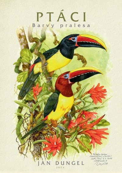 Nádherná, monumentální kniha obrazů a kreseb malíře a přírodovědce Jana Dungela z třiceti let výprav do Jižní Ameriky.Malíř a přírodovědec Jan Dungel se věnuje dokumentaci tropické přírody Jižní Ameriky přes třicet let. V době všudypřítomné fotografie jako jeden z mála navazuje na tradici malířů 19. století, kteří se účastnili přírodovědeckých výprav. V amazonských pralesích, pod zasněženými vrcholy And či v nejrozsáhlejších mokřadech na Zemi Pantanal a Los Llanos tráví každoročně několik měsíců, aby ve skicáři zachytil fascinující svět živočichů a rostlin. Jeho kniha představuje portréty neotropických ptáků, které vznikaly přímo v terénu, často za obtížných podmínek a dobrodružných situací, které popisuje autentický text jeho deníků.