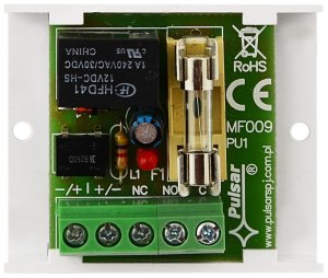 Reléový modul vhodný k použití v nízkonapěťových instalacích. Je určený k ovládání a indikaci stavu v poplašných systémech nebo systémech kontroly přístupu. Lze jej použít k ovládání zařízení s vysokou spotřebou energie prostřednictvím OC výstupů zabezpečovacích systémů. Kromě toho zajišťuje galvanické oddělení signálů, zdrojů napájení vztahujících se k výstupům modulu. Je vybaven sériovou pojistkou v obvodu relé (C, NO, NC). Modul je vybaven plastovým panelem se samolepicí páskou, která umožňuje jeho upevnění na rovný povrch (boční panel skříně, vyrovnávací PSU atd.), a otvory pro přišroubování panelu k montážnímu povrchu.