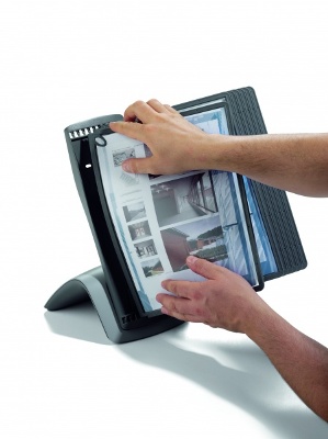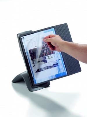 Pultový stojan v nadčasovém designu, pevná plastová základna Snadná výměna vložených informací, jako např. ceníků, telefonních seznamů atp. díky oboustrannému otvírání Matná fólie zabraňuje rušivým odrazům …