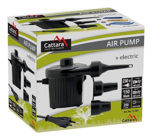 Elektrická vzduchová pumpa Cattara 230 V je nepostradatelným pomocníkem pro každého, kdo si chce ušetřit námahu při přípravě nafukovacích předmětů. S příkonem 150 W a vysokým průtokem vzduchu zajistí bleskové nafouknutí matrací, člunů, bazénů nebo zahradních hraček. Díky kompaktním rozměrům nezabere téměř žádné místo v garáži ani v zavazadle při cestě na dovolenou.