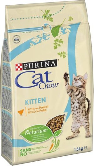 Poskytněte svému kotěti s touto recepturou všechny živiny, které potřebuje k tomu, aby z něj vyrostla úžasná kočka. Obsahuje DHA, složku, která se přirozeně vyskytuje v mateřském mléce a u kotěte podporuje rozvoj mozku a zraku. Již od roku 1926 odborníci společnosti PURINA spojují porozumění přirozeným požadavkům zvířat s přípravou správné výživy, aby mohli přispět k jejich celkovému zdraví a pohodě. Naše receptura s vysokým podílem krůty a specificky vybranými kvalitními zdroji bílkovin uspokojí přirozené potřeby kočky. Pečlivě připravené krmivo s přírodními složkami (petržel, špenát, mrkev, celozrnné obiloviny, čekanka a kvasnice) v chutné receptuře kočky spontánně preferují. PURINA CAT CHOW NaturiumTM je receptura se specifickou kombinací vlákniny z přírodních zdrojů. Obsahuje přírodní zdroje prebiotik, která prokazatelně zlepšují rovnováhu střevní mikroflóry a podporují zdraví trávicího traktu, aby kočka mohla získat ze své stravy co nejvíce. Vitamin E podporuje přirozenou obranyschopnost kočky a vitamíny skupiny B jí pomáhají účinně využívat energii. Složení: maso a živočišné produkty (33 %**), obiloviny (32 % celozrnné), bílkovinné extrakty, oleje a tuky, vedlejší produkty rostlinného původu (2,7 % sušená řepná dužina, 0,07 % sušená petržel odpovídající 0,4 % petržele), zelenina* (2 % sušený kořen čekanky, 0,07 % sušená mrkev odpovídající 0,4 % mrkve, 0,07 % sušený špenát odpovídající 0,4 % špenátu), minerální látky, kvasnice* (0,3 %).