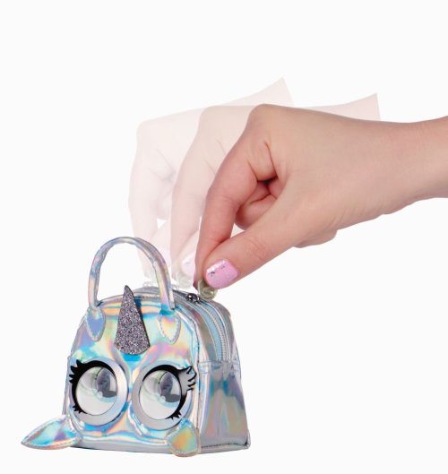 Stylová mikro kabelka v podobě Narvala má oči, které se otáčejí při otevírání a zavírání zipem. Vyrobeno z prémiových materiálů a textur. Velikost cca 8x8x5 cm. V jedné ze šesti mikrokabelek najdeš unikátní značkovou gumičku do vlasů. Vhodné od 5 let.