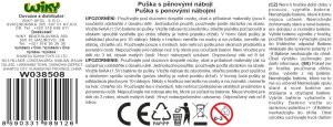 Puška s 36 pěnovými náboji. Rozměry 82x22x6 cm. 6xAA baterie nejsou součástí. Pojistka spouště pod spouští (pro střelbu nutno držet). Odkládací prostor pro 10 nábojů v horní části pušky.
