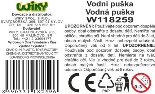 Puška vodní pumpovací. Velikost 31 cm. 2 varianty - bílá, modrá.