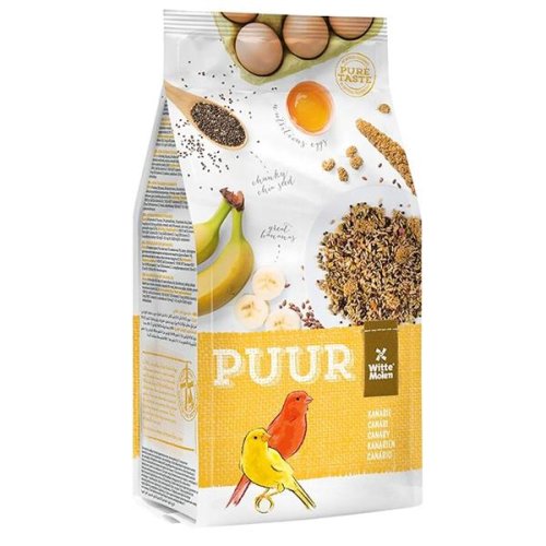 Witte Molen PUUR – skutečný požitek z ryzích přírodních chutí a vůní. Receptura PUUR Canary – kanár obsahuje vše, co kanárci potřebují pro plnohodnotný život. Vyvážené složení s přidanými vitamíny a stopovými prvky pro zvýšení vitality ptáků. Přidané bílkoviny (vejce) napomáhají skvělé kondici opeření a odchovu mláďat. Lněné semínko pro lesklé peří a snadné přepeřování. Přidaná prebiotika se podílejí na zdravém trávení. Navíc drcené lastury ústřic podporují zdravé trávení a jsou výborným zdrojem vápníku. Krmivo bez umělých barviv a umělých aromat – chutí a vůní. Bohatá směs s chutnými a různorodými přírodními surovinami pro vynikající apetit. Obsahuje 27 chutných surovin, včetně kousků banánů, lněných a chia semínek, kousků prosných klásků a vajec. Vyrobeno v Holandsku ve společnosti Witte Molen s tradicí od roku 1740. Složení: Semínka (2 % proso, 2 % lněné semínko, 2 % chia semínko), zrna, vedlejší produkty rostlinného původu, minerální látky, ovoce (1 % banán), oleje a tuky, zelenina, vejce a vaječné výrobky (0,2 %). Analytické složky: Hrubý protein 15,8 %, hrubý tuk 15,3 %, hrubá vláknina 7,3 %, hrubý popel 4,4 %, vápník 0,62 %, fosfor 0,44 %, sodík 0,09 %.