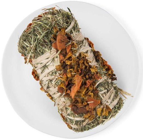 Witte Molen PUUR – skutečný požitek z ryzích přírodních chutí a vůní. PUUR pauze hay roll vegetable je lahodná rolka ze sena, se zeleninou. 100% přírodní zábavný pamlsek pro býložravé drobné savce. Králíci, morčata, činčily a osmáci si nejen pochutnají na voňavém seně, sušené mrkvi a dýni, ale zároveň rozplétáním rolky zaženou nudu. Pamlsek stimuluje přirozený hlodací instinkt a podporuje tak zdraví zubů. Navíc obsažená hrubá vláknina přispívá k správnému fungování trávení. Vyrobeno v Holandsku ve společnosti Witte Molen s tradicí od roku 1740. Složení: Vedlejší produkty rostlinného původu (90 % seno), zelenina (5 % mrkev, 5 % dýně).
