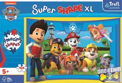 Puzzle s motivem oblíbených hrdinů z Tlapkové Patroly. Puzzle obsahují 104 velkých dílků neobvyklých tvarů, které určitě zabaví každého milovníka Rydera a jeho psího záchranářského týmu. Rozměr složeného obrázku: 60 x 40 cm Rozměr krabice: 40 x 27 x 6 cm Vhodné od 5 let