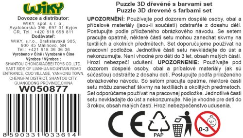 Puzzle 3D dřevěné dům s barvami. Rozměry složeného domu: 13,1x9,7x9,6cm. Obsahuje 3D puzzle, barvy, štětec, obrázkový návod.