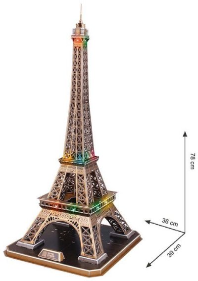 Puzzle 3D Eiffelova věž - LED 3D puzzle jsou ideální hračkou pro tvořivé a výtvarně nadané děti. Stačí trocha trpělivosti a z jednotlivých dílků lze poskládat téměř cokoliv. V nabídce najdete stroje, vojenskou techniku, budovy, mosty, věže, lodě, chrámy, katedrály i sportovní stadióny. Jednotlivé stavebnice se liší složitostí sestavení a to ovlivňuje i počet dílků v sestavě. Záleží na Vaší zručnosti a trpělivosti. Stavebnice Vám určitě nějaký čas zabere než z jednotlivých dílků sestavíte úžasná díla. 3D stavebnice je vyrobená z pevného materiálu - pevný kartón kašírovaný potisknutým papírem. Po sestavení vypadají 3D puzzle skvěle jako dekorace v dětském pokoji. Obtížnost přizpůsobte vlastním zkušenostem., Baterie 3xAAA- nejsou součástí balení Počet dílků: 82 Obtížnost: 6 ze 7 Rozměry: 39 x 78 x 36 cm Speciální efekty dodává LED podsvícení!