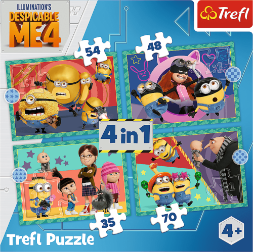 Puzzle 4v1 Blázniví Mimoni/Já, padouch 4 35,48,54 a 70 dílků