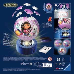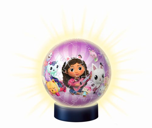 Postavte si svůj svítící 3D puzzle-ball z noční edice s motivem Gabby's Dollhouse z plastových dílků technologie EasyClick.