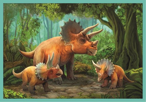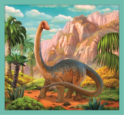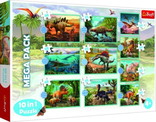 Puzzle s motivem oblíbených dinosaurů. Deseti samostatných puzzle s různým počtem dílků - 4x20, 3x35, 3x48 - postupně vedou ke zdokonalování dítěte při skládání a zvyšování obtížnosti. Velikost složeného obrázku (4x20 dílků) je 16,7 x 15,6 cm, velikost složeného obrázku (3x35 a 3x48 dílků) je 22,3 x 15,6 cm. Rozměry balení 40 x 27 x 6 cm Vhodné pro děti od 4 let