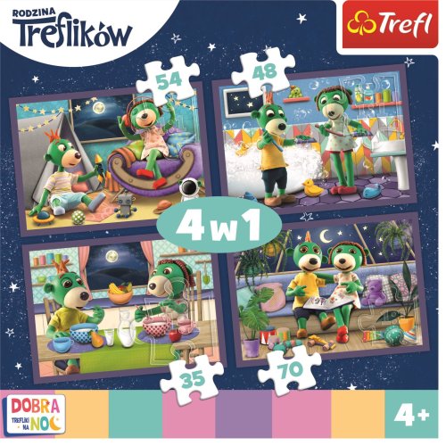 Puzzle Dobrou noc, Treflíci: Večerní rituály 4v1 (35,48,54,70 dílků)