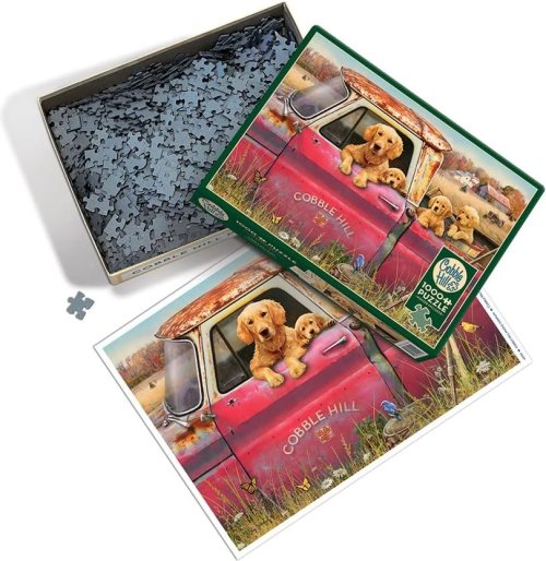 Raznice puzzle COBBLE HILL nekopíruje standardní mřížku, rohy a hrany dílků nejsou vždy v jedné ose a dílky mají neobvyklý tvar. Obtížnost puzzle je tak vyšší než u klasické mřížkové raznice, kterou používají přední výrobci v Evropě. Součástí balení je i předloha o velikosti 31,6 x 22,9 cm. Rozměr složeného puzzle cca 67,6 x 48,9 cm