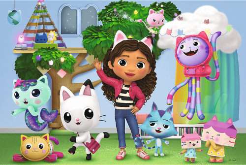 Domeček pro panenky Gabi je nová série pohádek, které dívky milují, protože příběhy jsou o malé holčičce, která je obklopena spoustou koček. Každý díl děti upoutá a příběhy pozorně sledují. Nyní si děti mohou složit vlastní obrázek, na kterém se objeví postavy z pohádky. Tento obrázek lze sestavit ze 100 prvků, které do sebe dobře zapadají. Díky krásnému, barevnému a ostrému tisku reprodukují vysoce kvalitní puzzle Trefl obraz, který zobrazují, mimořádně podrobně.