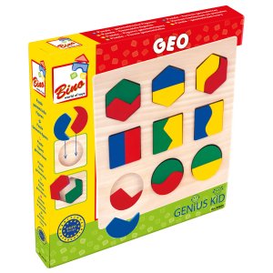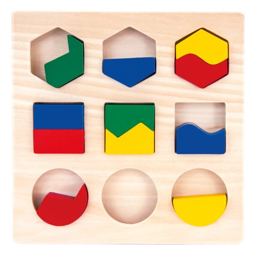 Dřevěná barevná skládanka pro děti, které se seznamují s geometrickými tvary. Skvělé pro cvičení představivosti a schopnosti kombinovat.
