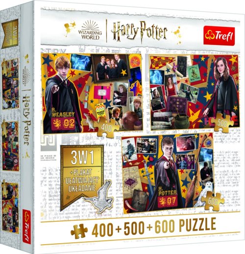 Puzzle Harry Potter Harry Potter, Ron, Hermiona 3v1 400 + 500 + 600 dílků