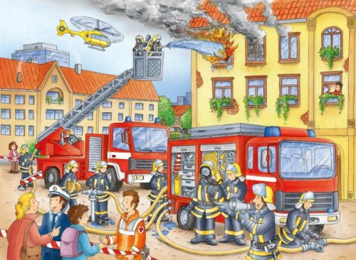 Puzzle pro děti s velkými XXL dílky a zasahujícím týmem hasičů. Doporučeno pro děti od 6 let. Rozměr složeného puzzle cca 49 x 36 cm
