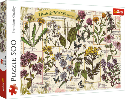 Puzzle - Herbarium: Léčivé byliny. Počet dílků: 500 Rozměr složeného puzzle: 48 x 34 cm Rozměr balení: 27 x 40 x 4,5 cm