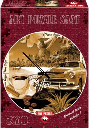 Originální spojení puzzle a hodin! Poskládejte si puzzle obrázek odpolední pohody se šálkem kávy a poskládaný motiv proměňte na funkční hodiny. Balení obsahuje: - kulaté puzzle o 570 dílcích - sáček s lepidlem na puzzle - kulatou podkladovou desku - hodinový strojek s příslušenstvím K provozu hodinového strojku je třeba 1 ks 1,5 V baterie AA (není součástí balení). Návod: Na poskládané puzzle rovnoměrně naneste polovinu lepidla (součástí balení). Nechce přibližně 60 minut zaschnout. Následně aplikujte zbývající lepidlo na přiloženou podložku a poskládaný motiv přilepte. Pro lepší výsledek doporučujeme po přilepení puzzle k podkladové desce zatížit a vyčkat na zaschnutí. Po zaschnutí připevněte hodinový strojek dle obrázkového návodu na krabici. Rozměr složeného puzzle cca průměr 46 cm