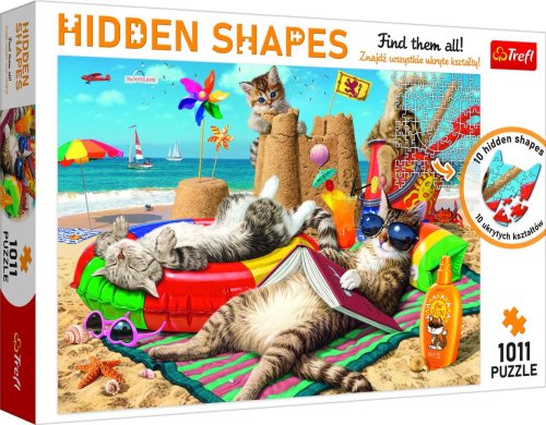 Puzzle obsahující více než 1000 dílků. V puzzle je ukryto 10 unikátních tvarů, které jsou viditelné až po sestavení celého obrázku. Puzzle je kombinací klasických a nepravidelných dílků. Rozměr složeného obrázku: 683x480 mm