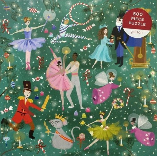 500 dílné puzzle Kouzelný Louskáček odkrývá pestrobarevné a vtipné ilustrace postav z této oblíbené vánoční klasiky.