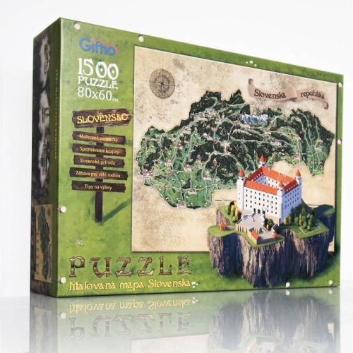 Krásné malované puzzle Mapa Slovenské republiky v dárkové krabičce s plakátem mapy zdarma.