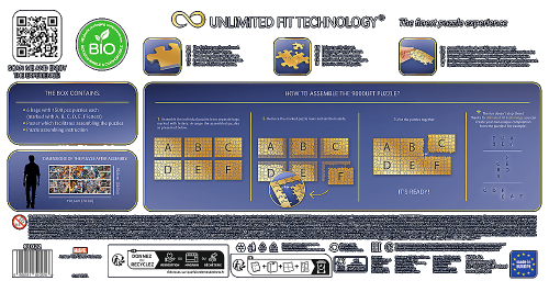 Ohromující kompozice obrázků s hrdiny z komiksového světa Marvelu. - Nejvyšší kvalita - puzzle je vyrobeno z nejsilnějšího modrého kartonového podkladu - Unikátní technologie UFT umožňuje vytvoření vlastní kompozice - Puzzle dílky drží u sebe - poskládané obrázky je možné pohodlně přemisťovat, aniž by se složený motiv rozsypal - Bio balení - bez svrchní plastové folie. Vnitřní sáček je zcela biologicky rozložitelný a kompostovatelný - Puzzle je baleno v šesti samostatných sáčcích po 1500 dílcích - Součástí balení je i papírová předloha o rozměru 67 x 45 cm