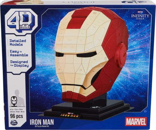 Tato 4D figurka Iron Mana si přímo říká o vystavení na vaší poličce! Vydejte se na dobrodružství superhrdinů s našimi 3D puzzle ze světa komiksů Marvel: The Infinity Saga. Tento 4D model Iron Manovy helmy obsahuje stojánek, na který ho můžete postavit, až bude hotový! Získáte 10 listů s 96 propracovanými vyjmutelnými dílky a snadným návodem k sestavení. Není potřeba žádné lepidlo ani nářadí! Rozměry helmy jsou 24,6 × 19 × 30 cm. Tento model se skvěle se hodí jako dekorace do ložnice, herny nebo k ostatním figurkám Avengers ‒ hrdě si ho vystavte. Pro nové mladé fanoušky Avengers ‒ toto puzzle je perfektním dárkem pro každého dospívajícího superfanouška. A pro dospělé fanoušky původních figurek superhrdinů také představuje perfektní hračku. Stavebnice 4D Build je fantastickým dárkem k narozeninám pro muže a dárkem pro něj! Ať už milujete Černého pantera, Thorovo kladivo, figurky Groota nebo Spider-Mana, toto puzzle 4D Build je přesně pro vás. Podívejte se na další modely s tematikou Avengers a Spider-Mana pro děti od 14 let. Vytáhněte si sbírku figurek Iron Mana a dalších marvelovských superhrdinů a začněte stavět!