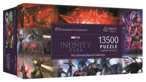 Ohromující puzzle zobrazující dobrodružství hrdinů Marvel Universe. - Nejvyšší kvalita - puzzle je vyrobeno z nejsilnějšího modrého kartonového podkladu - Unikátní technologie UFT umožňuje vytvoření vlastní kompozice - Puzzle dílky drží u sebe - poskládané obrázky je možné pohodlně přemisťovat, aniž by se složený motiv rozsypal - Bio balení - bez svrchní plastové folie. Vnitřní sáček je zcela biologicky rozložitelný a kompostovatelný - Puzzle je baleno v devíti samostatných sáčcích po 1500 dílcích - Součástí balení je i papírová předloha o rozměru 67 x 45 cm