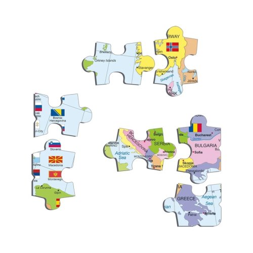 Politická mapa Evropy obsahuje názvy států, jejich hlavních a také některých největších měst, hlavní řeky, jezera, ostrovy, moře,...Na levé straně jsou vlajky států Evropské unie. Znáš evropské státy, jejich hlavní města, řeky?