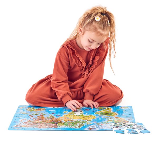 Milujete cestování a skládání puzzle? Pak je tato mapa světa přesně pro vás. Zeměpisné puzzle pro děti s mapou světa a ilustracemi v podobě světových památek a turisty vyhledávaných míst. Puzzle vám pomohou s objevováním zvířat v daných oblastech, pamětihodností, staveb či přírodní útvarů. Na puzzlích najdete Eiffelovku, pyramidy nebo třeba sochu Svobody. Obrázky od českého výtvarníka.