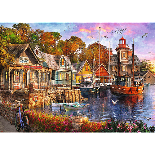 Kvalitní puzzle nadchne nejen fanoušky těchto skládaček. Krásný motiv znázorňuje Čajový čas: Přímořský přístav. Puzzle se skládá z 1000 dílků. Velikost složeného obrázku je 68,3 x 48 cm. Procvičujte svoji pozornost, ale také trpělivost. Rozměry výrobku 40 x 27 x 6 cm Vhodné pro děti od 12 let