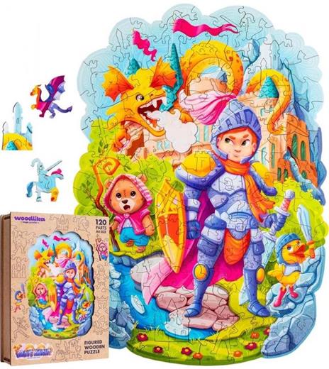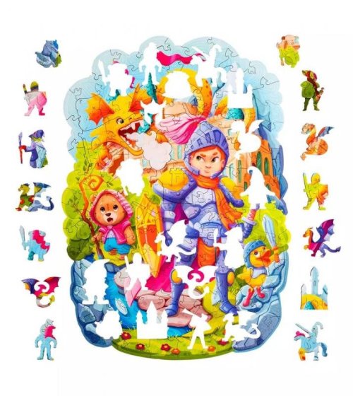 Barevné, poučné a napínavé – takové by měly být dětské puzzle. Jistě vás zaujme více jak sto výrazně barevných detailů s úžasnými vzory. Překvapte své dítě skvělým dárkem. Každé dítě zná ten příběh o dobrodružné cestě, ve které zvítězí udatný rytíř nad nebezpečným drakem. Každý dílek dřevěných puzzle má jedinečné a přesné fantastické tvary – od různých druhů kouzelných hůlek po hvězdy či magická zvířata. 120 dílků z kvalitního dřeva, z toho 35 dílků zaujme děti svými originálními tvary. Skládání puzzle zlepšuje paměť, pozornost a motoriku dítěte. Je dokázáno, že také pozitivně ovlivňuje mozkovou činnost dětí. Ty při hře ani nevnímají, že se tím zároveň i učí a rozvíjejí svoji představivost.