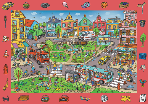Puzzle ze série Spy Guy od výrobce TREFL slibuje zábavu i po vložení posledního dílku na své místo. Po poskládání obrázku se totiž můžete pustit do zábavné hry. Po stranách rámečku jsou vyobrazené nejrůznější motivy. Ty se schovávají i na poskládaném motivu. Vaším úkolem je najít všechny obrázky, které zdobí barevný rámeček puzzle.