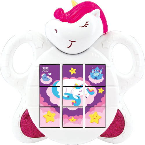 Praktické úchyty pro snadné držení a přenášení. Otáčením dílků lze složit tři různé obrázky. 8 náhodných zvuků a jedna melodie. Díky uchycení v rámečku se žádný dílek neztratí. Vhodné také na cesty nebo do kočárku. Podporuje soustředění a jemnou motoriku. Pro děti již od 1 roku.