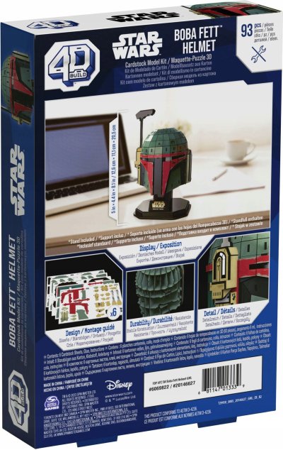 Pro fanoušky Star Wars ‒ tato 4D figurka Boby Fetta si přímo říká o vystavení na vaší poličce! Vydejte se na epické dobrodružství s naším modelem ze světa Star Wars ve filmové kvalitě. Tato sada 4D Build obsahuje všechny detaily ve filmové kvalitě, které znáte z filmů, a k tomu ještě lepidlo a stojan! Získáte 6 desek s 93 vyjmutelnými dílky a snadný návod na sestavení. Není potřeba žádné nářadí! Rozměry helmy Boby Fetta jsou 12,6 × 11,1 × 20,5 cm. Skvěle se hodí jako dekorace do ložnice, herny nebo jako ozdoba narozeninového večírku s tematikou Star Wars ‒ hrdě si svou helmu vystavte. Pro nové mladé fanoušky Star Wars ‒ toto puzzle je perfektním dárkem pro každého dospívajícího superfanouška. A pro dospělé fanoušky původních figurek ze světa Star Wars také představuje perfektní hračku. Ať už milujete světelné meče, Mandaloriana, Baby Yodu nebo Darth Vadera, tato 4D helma Boby Fetta je přímo pro vás. Podívejte se na další modely ze světa Star Wars určené pro dospívající od 14 let. Puzzle 4D Build je také fantastickým dárkem k narozeninám pro muže a dárkem pro něj! Vytáhněte světelný meč, abyste si užili akční zábavu, a začněte stavět!