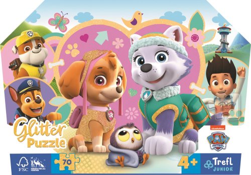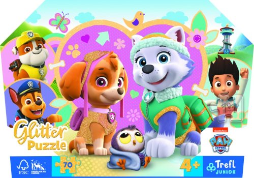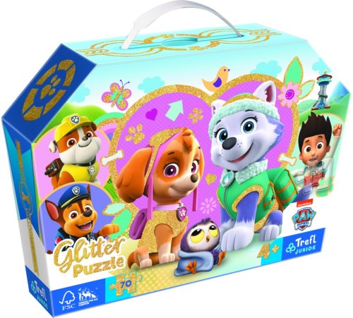 Dětské puzzle s jemnými zlatými třpytkami, obsahují 70 dílků. Baleno v dekorativním kufříku s praktickou rukojetí pro přenášení. Poskládáním puzzle vznikne obrázek o rozměrech 410 × 275 mm. Pro děti 4+.
