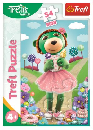 Mini-Puzzle (dílky 2,2 cm, baleno v malé krabičce) ze série Treflíci. Rozměr složeného puzzle cca 13 x 20 cm