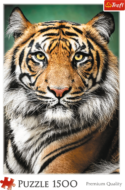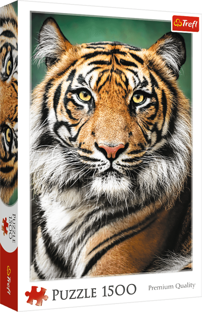 Puzzle - Tygří portrét. Počet dílků: 1500 Rozměr složeného puzzle: 58 x 85 cm Rozměr balení: 40 x 27 x 6 cm