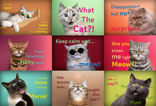 Puzzle - Vtipné kočičí výrazy. Počet dílků: 1500 Rozměr složeného puzzle: cca 85 x 58 cm Rozměr balení: 27 x 40 x 6 cm