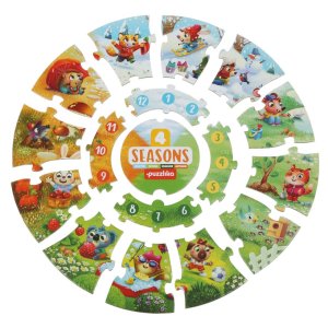 Puzzlika, je značka puzzlů s moderním kreativním designem, která přináší pro malé děti aktivní učení formou zábavné hry. Puzzle Čtyři roční doby je edukativní hra, obsahující 17 pevných dílků. Při jejich správném poskládání a přiřazení vznikne jeden velký kulatý obrázek, na kterém jsou znázorněny venkovní aktivity spojené s každým kalendářním měsícem. Zároveň se zde děti seznámí i s číslicemi označující jednotlivé měsíce v rámci všech čtyř ročních období, které jsou samostatně oddělené od obrázkových dílků. Průměr celého složeného obrázku je 28 cm. Naučné puzzle je skvělá hra pro malé děti, která u nich rozvíjí logické myšlení, představivost, kreativitu, jemnou motoriku a různé poznávací znalosti. Puzzle jsou vyrobeny z velice pevného vícevrstvého kartonu s lesklým povrchem. Karton byl vyroben z kvalitního, ekologicky pěstovaného dřeva. Puzzle je možné otřít vlhkým hadříkem. Doporučený věk od 2 let. Vyrobeno v Evropě.