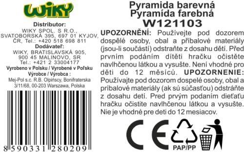 Klasická skládací barevná pyramida s kroužky pro nejmenší děti. Hračka, se kterou se procvičí i motorika dítěte. Vyrobeno ze zdravotně nezávadného plastu.