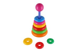 Skládačka pyramida s kroužky, díky které se děti učí rozeznávat barvy a velikosti. Hračka rozvíjí motorické schopnosti dítěte a logické myšlení. Pyramida je z měkkého plastu a je vysoká 30 cm. Dva druhy - zajíček, pyramida.