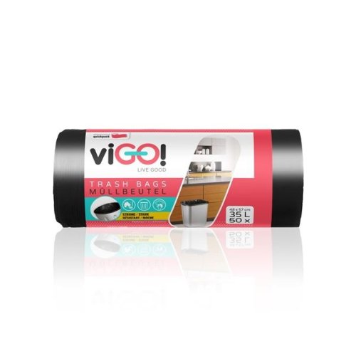 • Černý odpadkový pytel viGO! je vyrobena z kvalitního HDPE materiálu (polyethylen vysoké hustoty)