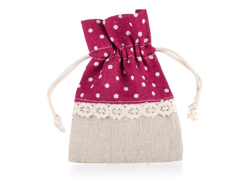 Přírodní dekorativní pytlík z bavlny, kombinace přírodní a červené barvy s dekorem bílé puntíky, rozměr: 10 x 13 cm. Vhodný pouze pro dekoraci.