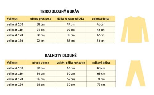 Pyžamo dlouhý rukáv, dlouhé kalhoty materiál 95% Bavlna, 5% Elastan 180g/m2 praní na 40°C šetrné odstředění sušit v sušičce nedoporučujeme žehlit do 110°C Pyžamo s dlouhým rukávem pro naše nejmenší.