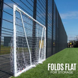 Quickplay Q FOLD Match 3 x 2 m je futsalová branka s unikátním skládacím designem, která vás připraví ke hře za pouhých 30 sekund na zahradě i na fotbalovém hřišti. Konstrukce je vyrobená z odolného UPVC materiálu, díky kterému lze používat za jakéhokoliv počasí. Součástí je také kvalitní HDPE síť s průměrem 2,5 mm. Branka Q-FOLD MATCH se vyznačuje inovativním (patentovaným) rychlým skládáním, díky kterému se skladuje snadněji než jakákoli jiná branka z PVC na trhu. Vyhněte se nepříjemnému vzhledu zahrady a využijte svůj venkovní prostor naplno tím, že ji po použití uložíte do garáže, u plotu či zdi. - rozměry 3 x 2 m - hmotnost balení: cca 17 kg - rychlé první sestavení za 10 minut - složení za 30 sekund - používání do každého počasí po celý rok - systém uzamykatelných spojů - vyhovuje normě BS EN 16579
