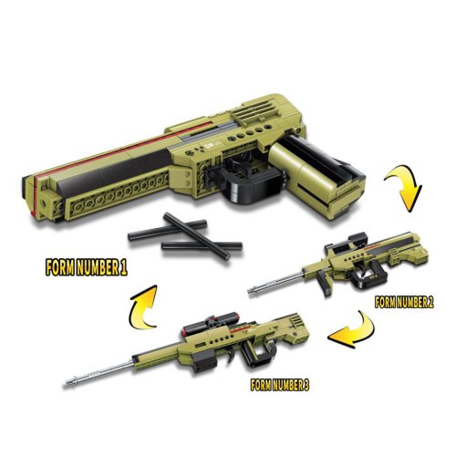 Stavějte a přestavujte! Tři zbraně v jedné snadno přizpůsobíte situaci. Můžete vládnout pistolí, útočnou, nebo odstřelovací puškou. Sestavená zbraň není jen na ozdobu, je vybavena šipkami, se kterými lze cvičit střelbu! Vysoce variabilní stavebnice Qman z pestrobarevných plastových kostiček lze kombinovat s podobnými stavebnicemi mnoha dalších významných výrobců. Vyrobeno z kvalitního, nezávadného a odolného, ABS plastu. Baleno v pestře potištěné papírové krabičce. Hlavní vlastnosti:• 142 dílků• 3 varianty sestavení• střílí, vybaveno 3 šipkami• kompatibilní se stavebnicemi dalších výrobců